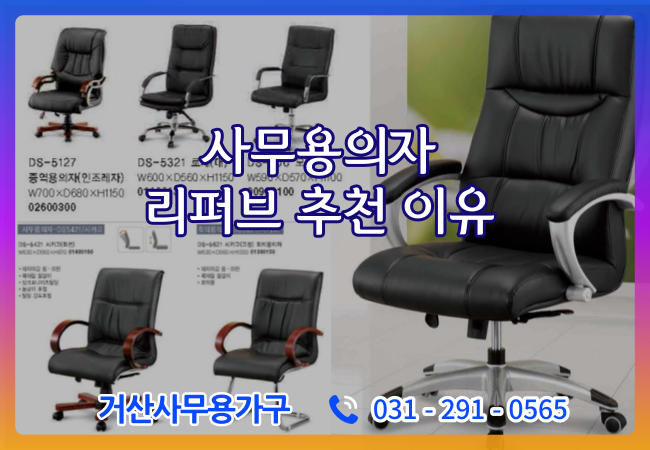 하지만, 좋은 품질의 사무용 의자는 가격이 만만치 않습니다. 이럴 때 스마트한 선택은 바로 '리퍼브 가구'입니다. 리퍼브 가구는 작은 흠집은 있지만, 품질과 기능 면에서는 새 제품과 큰 차이가 없으며, 가격은 훨씬 합리적입니다. 특히, 거산사무용가구에서 판매하는 리퍼브 사무용 의자는 높은 가성비와 품질을 자랑합니다.
